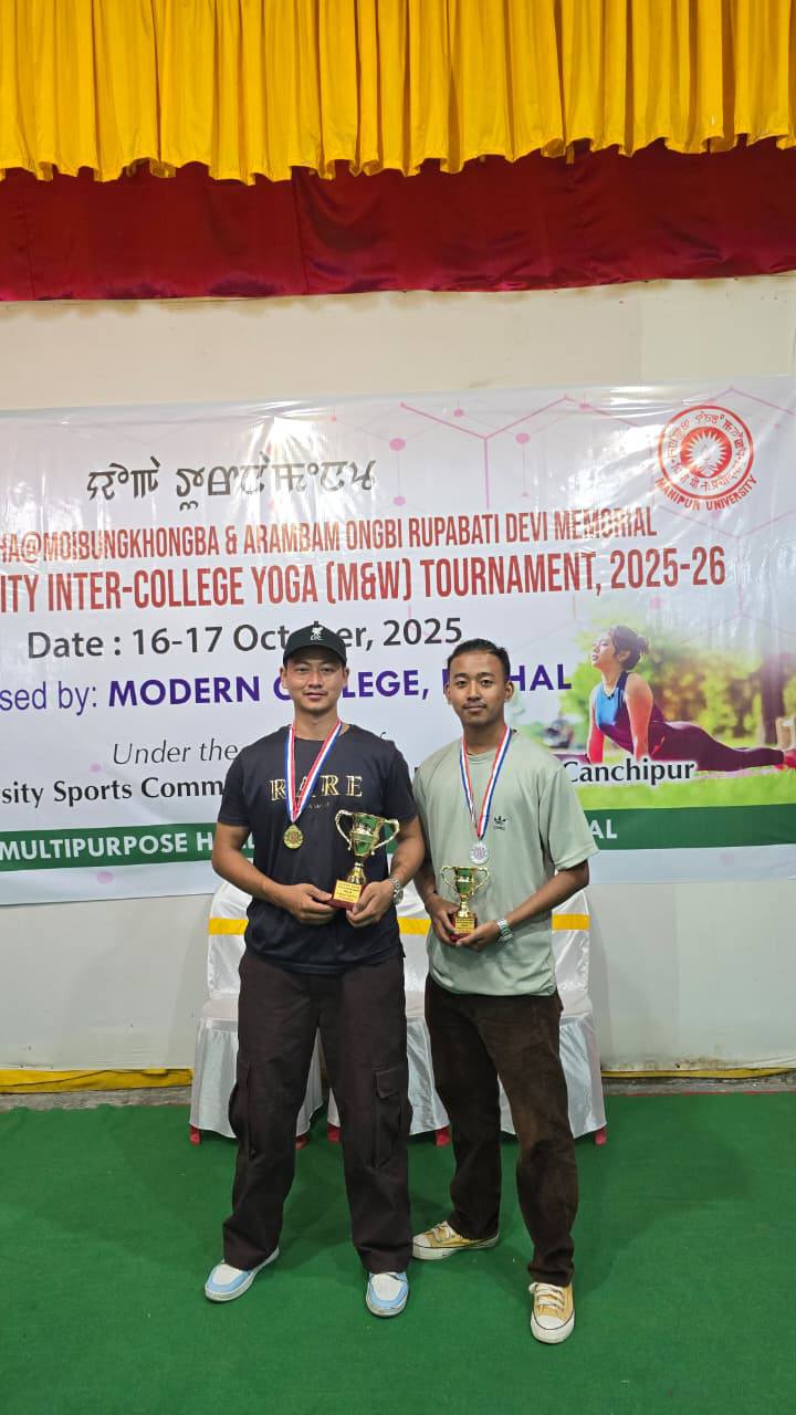 M. Manglemba Singh, a student of Thoubal College, has been selected to represent Manipur University in the All India Inter-University Men’s Yoga Tournament 2025–26, scheduled to be held from 24 to 28 November 2025 at VELS Institute of Science and Advanced Studies, Chennai. He qualified for this opportunity by securing selection in the Traditional Individual Category at the Manipur University Inter-College Yoga Tournament 2025–26, held on 16–17 October 2025 at Modern College, Porompat, Imphal East.